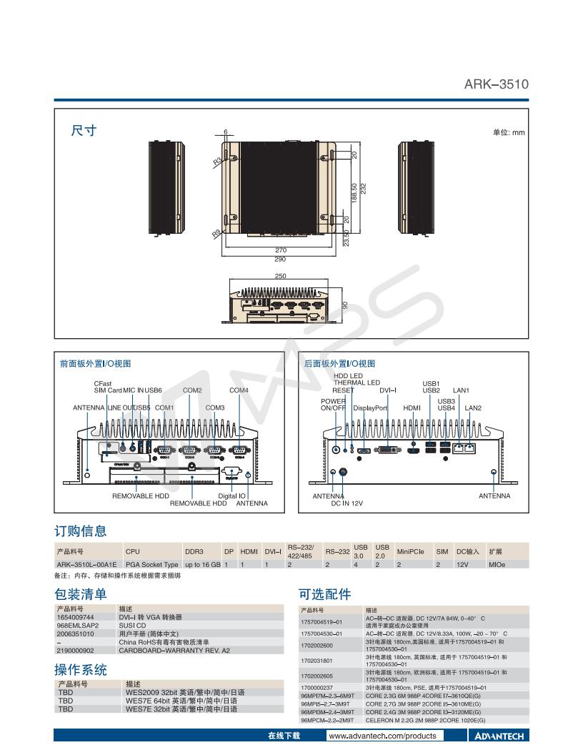 無(wú)風(fēng)扇嵌入式工控機(jī)ARK-3510
